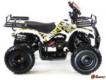 Квадроцикл оборудован компактным, двухтактным бензиновым двигателем объёмом 50 куб. см. в паре с фрикционным сцеплением центробежного типа. Это обеспечивает простоту и надежность конструкции. Квадроцикл имеет хорошую базовую комплектацию: он оборудован электрическим стартером, пультом дистанционного глушения и запуска двигателя, механическим ограничителем скорости, кнопкой быстрой остановки двигателя, яркими передними светодиодными фарами с режимом ближнего и дальнего света, раздвоенной системой выхлопа, механическим ручным стартером с механизмом легкого запуска. За счёт этого механизма существенно снижено усилие при запуске двигателя, с этой задачей может справиться и ребенок. Простота управления обусловлена фирменной передней подвеской полузависимого типа, которая позволяет сохранить стабильность в движении и лёгкость рулевого управления. Передние и задние механические дисковые тормоза способны эффективно остановить лёгкий и прочный квадроцикл.