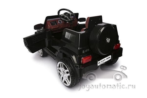 Детский электромобиль Jeep «Гелендваген» может похвастать роскошным салоном. В машине установлено комфортабельное «кожаное» сиденье с ремнями безопасности, приборная панель оснащена подсветкой. Аудиосистема Гелендвагена позволяет проигрывать музыку с SD-карты, флешки или MP3-плеера. Машина оборудована пультом родительского контроля, работающим на расстоянии до 10 метров.