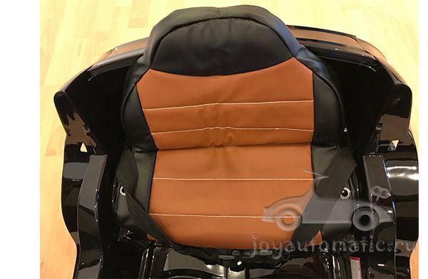 Эргономичный дизайн салона, кожаное кресло водителя и ремень безопасности надежно фиксируют молодого водителя в электромобиле. Для большего комфорта на прогулке, родители могут регулировать скорость и траекторию движения электромобиля при помощи пульта дистанционного управления.