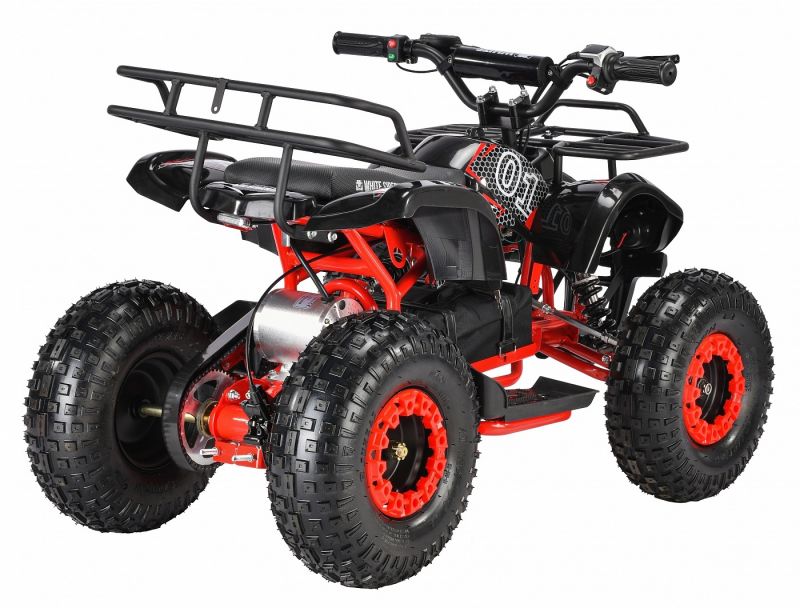 - оснащен 1500 ваттным мотором, который разгоняет квадроцикл до 49 км/ч;