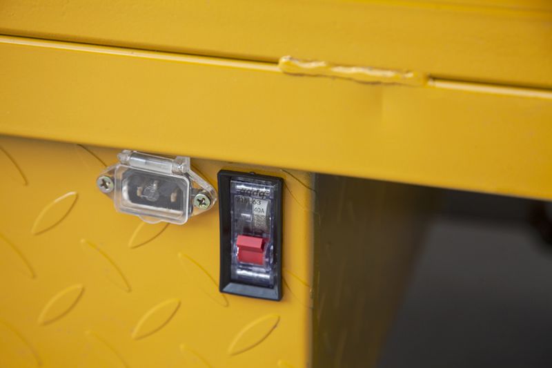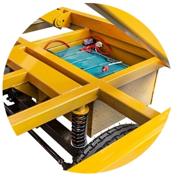 - подъёмный гидравлический привод электроплатформы управляется с отдельного пульта (грузоподъёмность до 500 кг).