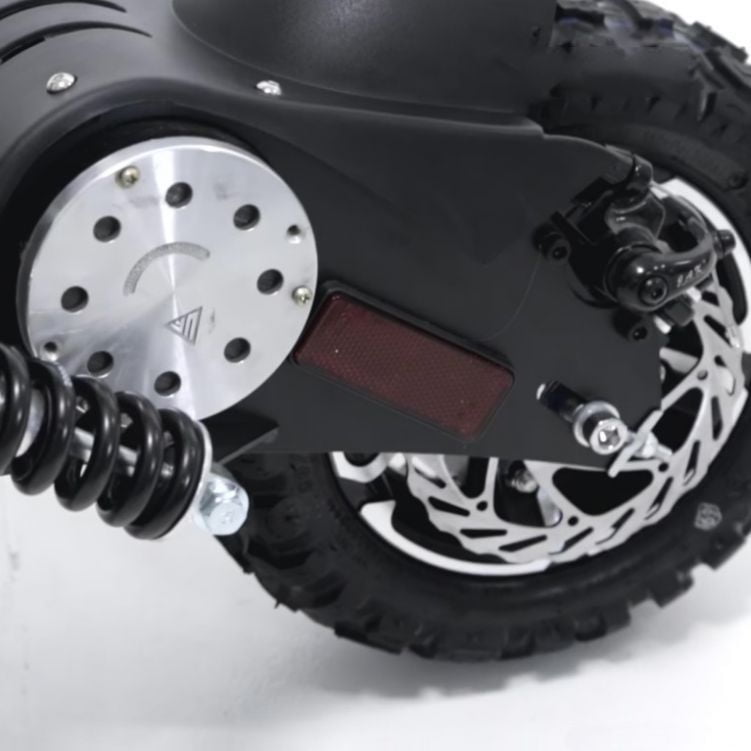 RHINO Redekop 1600W — оснащен 12-дюймовыми колесами с глубоким рисунком протектора, дисковой тормозной системой и регулируемой подвеской, что повышает его проходимость и гарантирует безопасность и комфортность ваших передвижений по городу. Более того, самокат имеет складную конструкцию и быстросъемное сиденье, что делает процесс его использования, транспортировки и хранения еще удобнее, а также подкрылки, которые защитят вас и сам.
