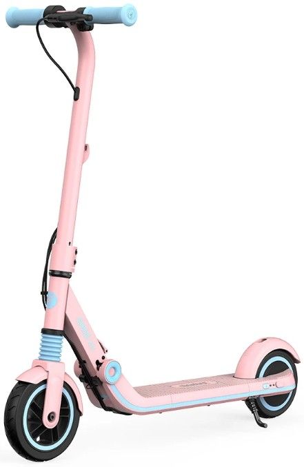 Электросамокат Ninebot eKickScooter Zing E8 — детский самокат от 6 до 12 лет (рекомендованный рост 115-145 см) с технической оснащенностью и удобствами для маленьких райдеров. Рама выполнена из алюминиевого сплава складного типа, а вес всего лишь 8 кг. Ребенок легко справится с агрегатом и сможет самостоятельно переносить без помощи взрослых. Шины бескамерные, что повышает износостойкость, ведь им не страшны проколы и порезы. Синтетический каучук, входящий в их состав колес, обеспечивает надёжное сцепление с дорогой. Стоит отметить уменьшенные ручки из гипоалергенного EVA-материала, безопасного для нежной детской кожи.