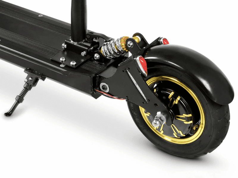 Электрический самокат Osota ROVER NT PRO был разработан для ценителей повышенного комфорта. Двойная пружинная подвеска и большие 10-дюймовые колеса в универсальных дорожных покрышках обеспечивают мягкий ход по неровному городскому тротуару и пересеченной местности. Благодаря прочной раме из стали аппарат выдерживает до 150 кг, поэтому подойдет широкому кругу пользователей. Дополнительные преимущества – вместительная дека и регулируемая по высоте рулевая стойка. Вес изделия составляет 26.4 кг.