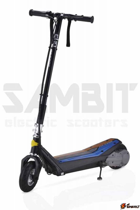 Sambit 100 EHO, и Sambit 200 EHO – внешне похожи, и конструкция их почти одинакова: красивая и надежная модель электросамоката, рассчитанная на детей постарше и подростков. Тем, не менее, модель 200 имеет вполне достаточную прочность, для того, чтобы иметь возможность комфортно кататься на нем человеку с весом до 100 кг.