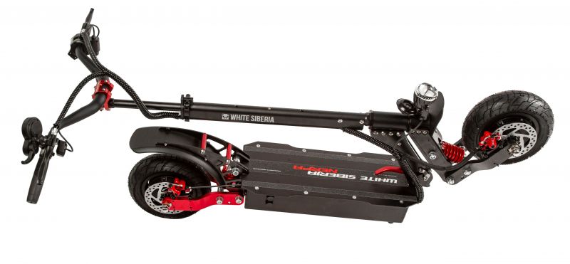 Электросамокат WS Nerpa 2400W — новинка от компании White Siberia. Что же может предложить нам данная модель? Как оказывается, достаточно много. Например, мотор с мощностью в 2400в, который способен разгоняться до приличной скорости в 60км/ч. Надежная, встроенная батарея всемирно известной фирмы Panasonic, на 52v/21aH даст возможность проехать до 60км без дополнительной подзарядки. Время заряда от 0 до 100% составляет 9 часов. Вес электросамоката WS Nerpa 2400w составляет 29 килограмм, а максимально возможна нагрузка до 140 килограмм. Колёса диаметром 10 дюймов имеют отличную проходимость, вне зависимости от рельефа, грунта или покрытия дороги. Имеется встроенная, яркая фара ‘’Арктик’’ способная освещать путь и видеть всё перед собой. Безлюфтовый руль, придаст вашей езде плавность.