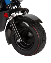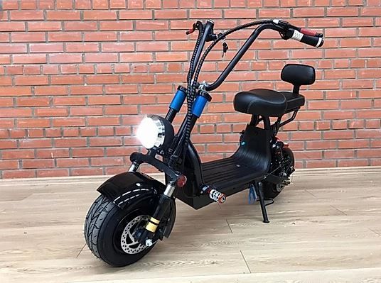 • для плавной и мягкой езды электроскутер оснащён амортизаторами с обеих сторон.