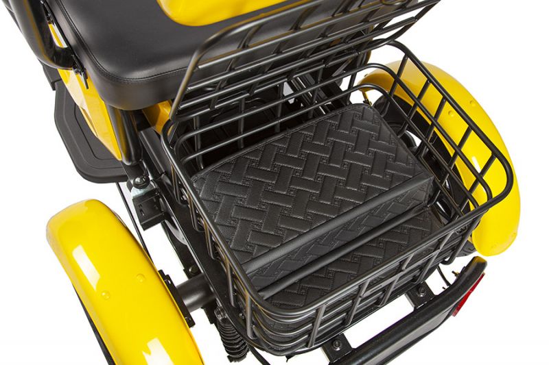 - оснащен 650W мотором на задней оси с редукторной передачей;