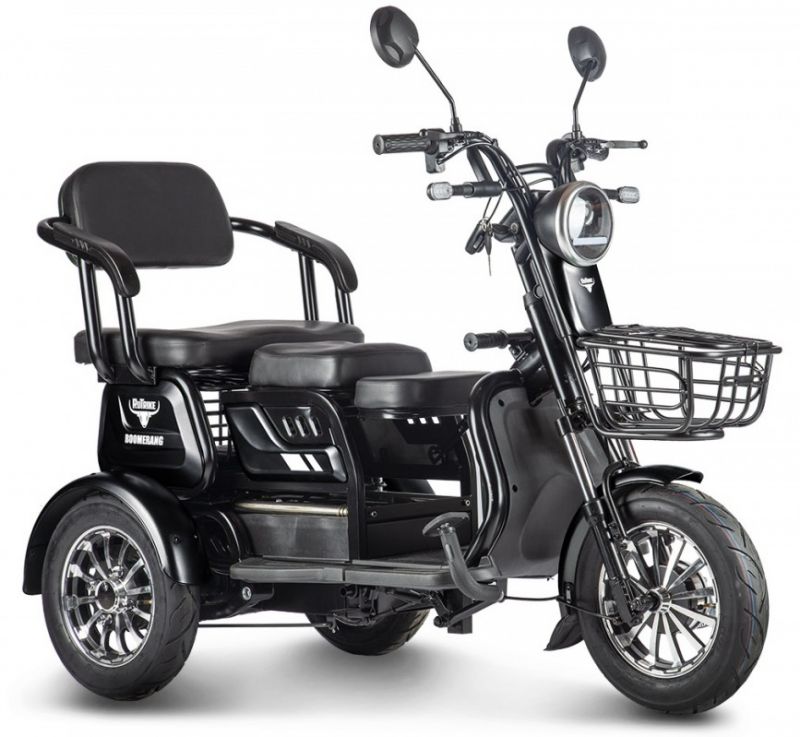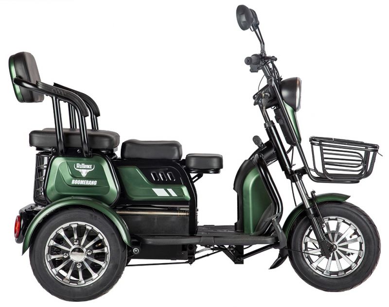 Электротрицикл Rutrike Бумеранг — надежный пассажирский трицикл, который оснащен электромотором мощностью 650 Вт. Трицикл поставляется по умолчанию без батареи, выбрать с какой из батарей вы хотите приобрести можно прямо над кнопкой купить. Есть возможность для установки батареи напряжением 48V — 60V. Скорость максимальная у Трицикла — 20-32 км/ч. При полном заряде транспорт проезжает до 30 км. Имеется 3 скорости управления на трицикле.