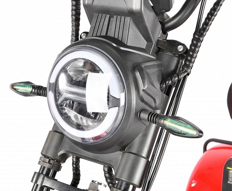 • оборудован одной мощной фарой, двумя стробоскопами, задними ходовыми огнями сертификации ECC и поворотниками с ярким свечением.