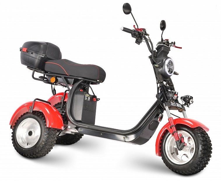 Электроскутер WHITE SIBERIA IKRA 5000W — самая мощная модель из всего ряда грузовых и пассажирских электроскутеров WHITE SIBERIA. Высокая мощность и маневренность ТС, максимальная скорость до 65 км/ч и поворот под углом наклона в 40 градусов. Модель напоминает обычную разновидность ситикоко, только 2 мотор-колеса прямого привода на 10 дюймов и установка покрышек для бездорожья указывают на ее принадлежность к грузовым трициклам. Смарт-контроллер ТС предназначен для передвижения с любой разновидностью мотор-колеса, работает он в широком диапазоне силы тока до 80 А. Отличительная черта смарт-контроллера IKRA в автоматической адаптации под силу тока и изменяющееся напряжение. Водитель и пассажиры начинают движение с мягкого старта без рывков, движение электроскутера плавное без резких торможений и ускорений. Контроллер защищает ТС от перегрузки, перенапряжения и нагревания, меняет силу крутящего момента в зависимости от заданных настроек на компьютере (на ПК есть 1000 режимов работы, включая самодиагностику электроскутера).