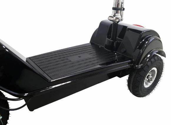 Электротрицикл имеет стальную конструкцию, выдерживающую максимальную нагрузку до 120 кг, благодаря чему моделью могут пользоваться райдеры с лишним весом. На электрическом транспорте установлены пластиковые подкрылки. Передняя фара и задний стоп-сигнал повышают безопасность в ходе езды ночью.