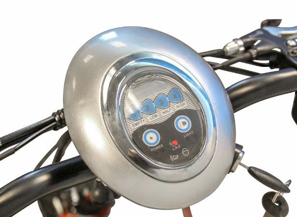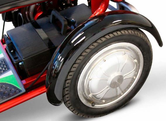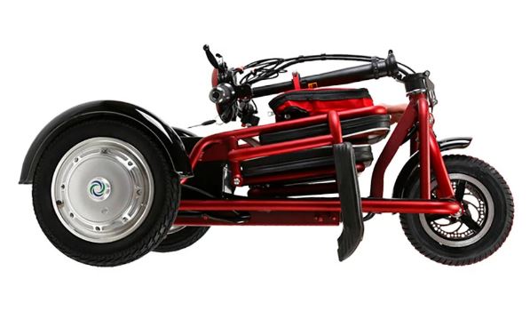 Прочная рама сделана из стали и выдерживает максимальную нагрузку до 135 кг. Руль регулируется по высоте. Посадка – низкая. Кресло – широкое, удобное и мягкое, с подлокотниками. Площадка для ног устлана резиновым ковриком. Электротрицикл можно компактно сложить для удобного хранения и транспортировки. Модель укомплектована сумкой для перевозки личных вещей. Опционально и по желанию можно дооснастить трицикл, установив переднюю грузовую корзину. Модель снабжена полноразмерными металлическими крыльями, защищающими от грязи.