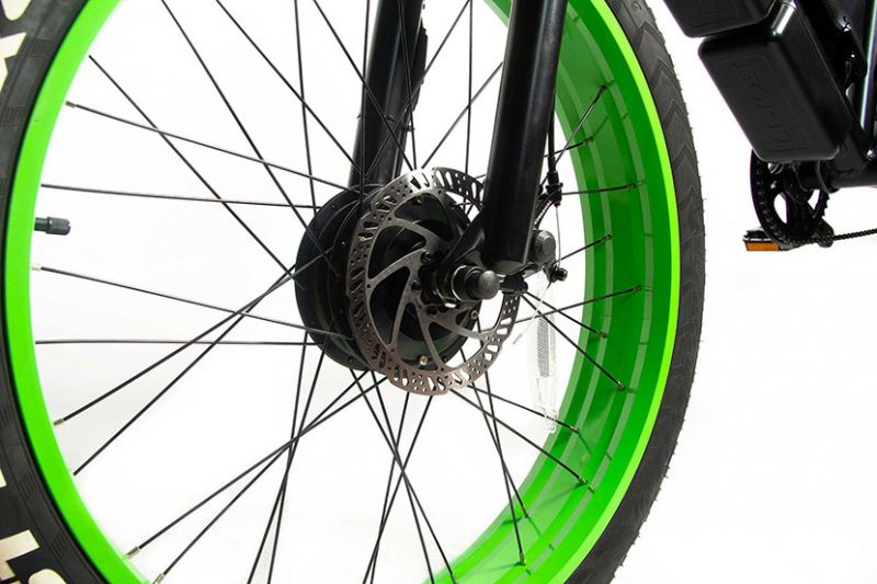 На данной модели электро-фэтбайка установлены дисковые механические тормоза. Также возможен заказ электрофэтбайка с дисковыми гидравлическими датчиками Tektro, которые при нажатии на тормоз отключают мотор. Это сделано для того, чтобы энергия не тратилась зря, если вдруг перед торможением вы забудете отпустить ручку газа.