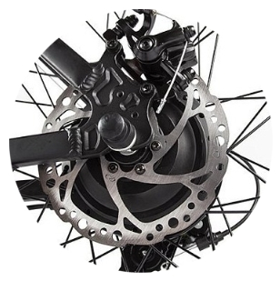 - оснащен 350 ваттным мотором, который разгоняет велосипед до 37 км/ч;