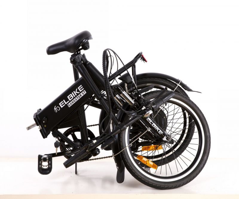 Elbike Gangstar Gangstar 250W – складной электровелосипед, оборудованный 250 Ваттным мотором. Обладает прочной аллюминевой рамой, рассчитанной на нагрузку в 120 кг, но при этом вес транспортного средства с аккумулятором всего 22 кг. Самая улучшенная и модифицированная модель в линейке. Компактный, складная конструкция рамы позволяет легко транспортировать и хранить транспортное средство. Аккумулятор встроен в раму, и защищен от влаги и грязи, при этом не виден для окружающих.
