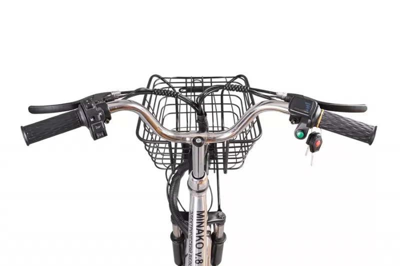 Электровелосипед Minako V8 PRO — новая универсальная модель, с мощным двигателем, новыми колесами и корзиной. Мотор 500W позволяют набирать скорость до 50 км/ч. Емкий аккумулятор держит заряд до 45 км без подзарядки. Безопасное и плавное торможение обеспечивает барабанная тормозная система. Время зарядки занимает не более 6 часов. Электровелосипед выдерживает нагрузку до 140 кг, при это вес самого велосипеда всего 27 кг.