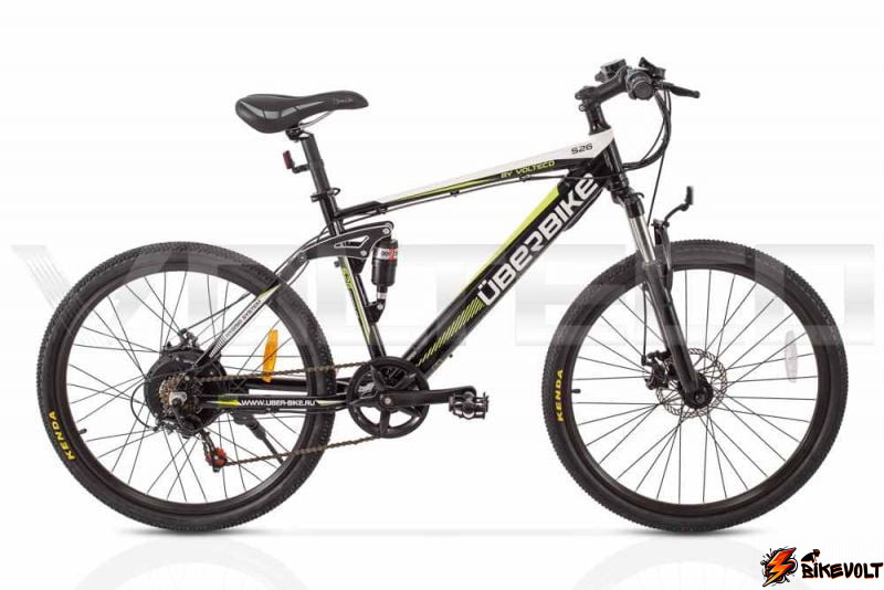 Элегантный UBERBIKE S26 новейший прогулочный электрический двухподвес. Главной особенностью — является «скрытое» размещение аккумуляторов в легкой алюминиевой раме. Аккумулятор расположен непосредственно в раме, что делает его не отличимым от обычного велосипеда. Вес велосипеда не превышает 17кг, а грузоподъемность достигает 100! Полностью амортизированная подвеска делает прогулку комфортной, а дисковые тормоза на переднем и заднем колесе — безопасной.