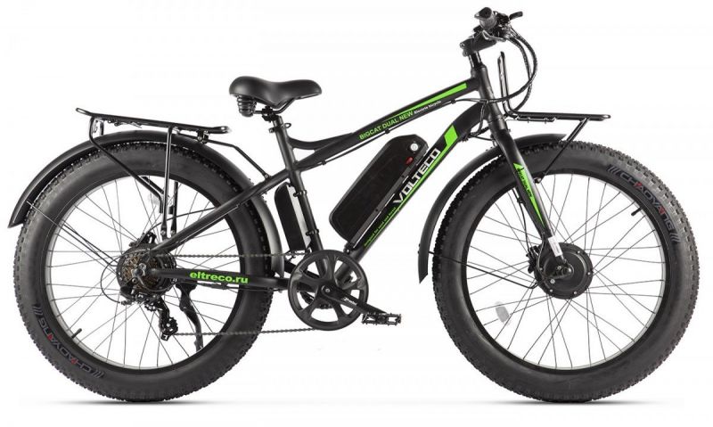 Велогибрид VOLTECO BigCat DUAL NEW — это популярный полноприводный электрофэтбайк, подходящий для езды по городу, загородным поселкам , сложным дорогам и различным типам бездорожья.