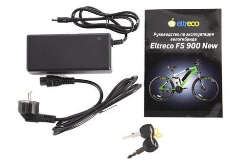 Eltreco FS-900 new имеет двигатель, мощностью 350 Вт. В связи с наличием литий-ионного аккумулятора АКБ 36V 10Ah на велогибриде можно преодолевать дистанцию в 70 км на одном заряде.Аккумулятор расположен посередине, поэтому центр тяжести смещается вниз, что улучшает управление велогибридом.