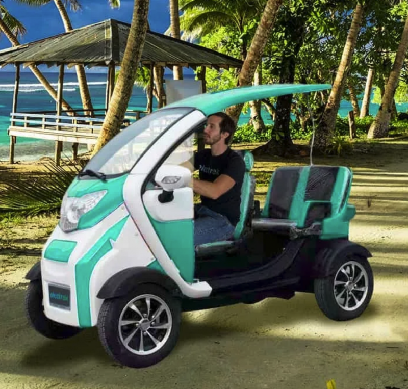 Скорость — 40 км/ч, дальность — до 80 км, грузоподъемность — 300 кг, вес- 770 кг, мощность — 72 Вт