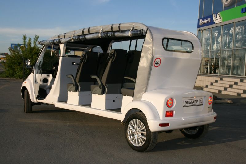 Гольфкар Эльтавр Дилижанс Стандарт (длинная база 10+1) — коммерческий, экологически чистый электробус полностью разработан и производится в Крыму с 2015 года. Предназначен для комфортной поездки пассажиров в туристических зонах. Машина заряжается от обычной бытовой розетки на 220 Вольт. Стоимость пробега 100 км пути не превышает 75 рублей. Машина оснащается литиевой батареей для круглогодичной эксплуатации, срок службы которой достигает более 16 лет. Оборудован рулонными мягкими дверьми для всепогодной эксплуатации и автономным отопителем для эксплуатации круглый год.