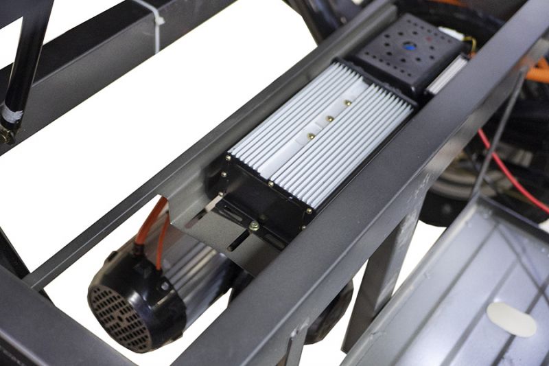 - оснащен 1500 ваттным мотором, который разгоняет электрическую тележку до 25 км/ч;