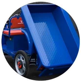 Электротрицикл TaiLG TL650DQZ-55Z — грузовой электротрицикл с кузовом самосвального типа и откидывающимися бортами. Не требует регистрации в ГИБДД. Для поездок нужны права любой категории. Трицикл уже оснащен аккумулятрной батереей и вам не придется ее отдельно покупать и устанавливать. На жесткой раме располагается приводная балка задних колес, на которой находится электродвигатель. Под сиденьем водителя находится контролер и аккумуляторы, которые позволят проехать 45 км на скорости в 32 кмч. Элементы управления вынесены в переднюю часть ГЭТ. Так же присутствует педаль тормоза совмещенная с ручником.