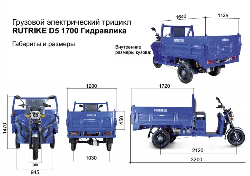 Электрический трицикл Rutrike D5 с гидроподъёмником кузова — новинка от Rutrike