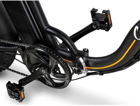 - Складная конструкция рамы, складные педали. В сложенном виде велосипед удобно транспортировать (например, перевозить в багажнике автомобиля) и хранить в квартире либо в другом помещении. Электробайк имеет защиту от непреднамеренного раскладывания во время эксплуатации.