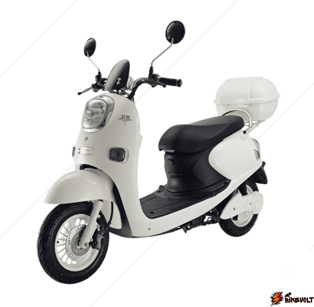 Один из самых быстрых (до 60км/ч) он легко преодолевает расстояние до 75 километров без подзарядки. Закреплённый за водителем багажник поможет с лёгкостью перевезти необходимые вещи.