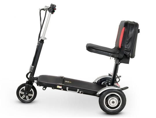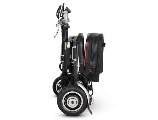 Электротрицикл, и без того весьма малогабаритный, является складным. Складывается не только рама, дополнительно можно опустить рулевую стойку и сложить рукоятки. В сложенном виде аппарат занимает мало места, и его очень удобно транспортировать (например, перевозить в багажнике автомобиля) и хранить в помещении. Он поместится и в пассажирский лифт. Кроме того, его очень удобно везти за собой, как чемодан (для этого на руле есть специальная ручка). Раскладывается трицикл также просто, как и складывается.