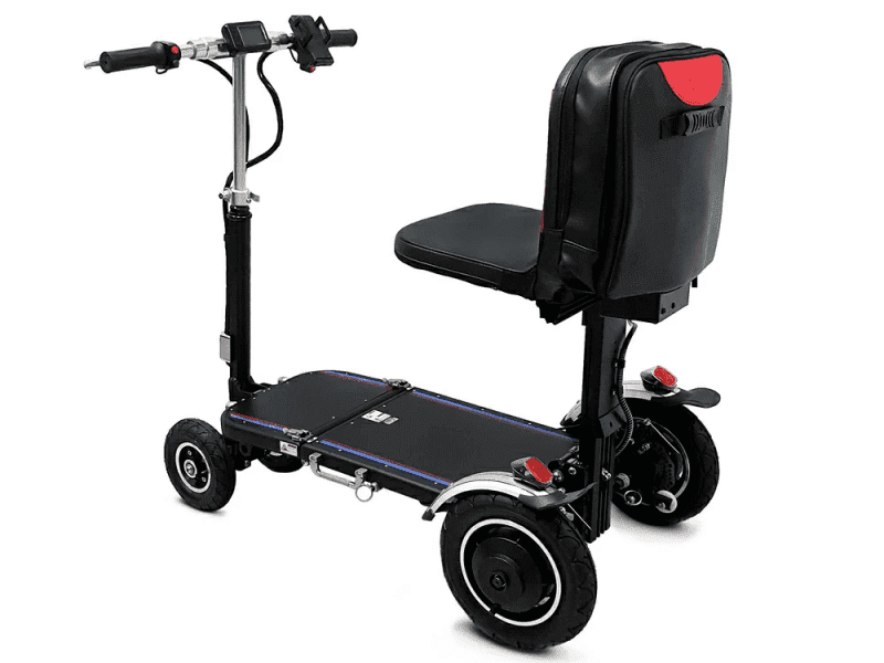Эффективный складной механизм (несколько секунд на то, чтобы вдвое сложить и разложить модель). Чтобы сложить трицикл, требуется несколько минут: его переднюю и заднюю части следует плотно сдвинуть друг к другу, рукоятки опустить. В сложенном состоянии скутер без труда помещается в багажник даже самого малогабаритного автомобиля, не занимает много места в квартире.