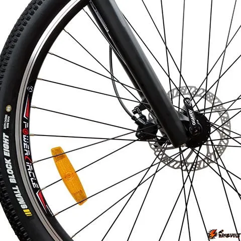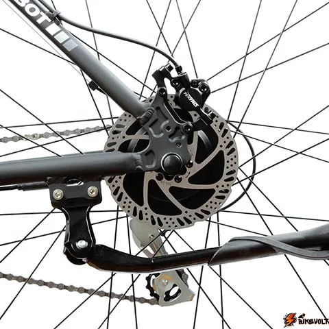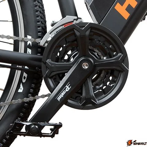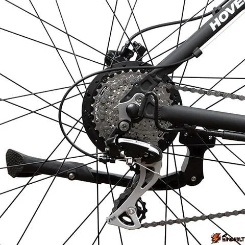 Электровелосипед Hoverbot CB-5 X-Rider оснащен электродвигателем мощностью 500 Вт (JNW), контроллером и АКБ Li-ion на 48 В, 10,4 Ач, которая эргономично интегрирована в нижнюю трубу. Компактный аккумулятор улучшает ходовые характеристики электробайка и положительным образом сказывается на дизайне, делая велогибрид очень стильным. Велосипед с мотором разгоняется до 35 км/ч и преодолевает до 70 км на одном заряде.