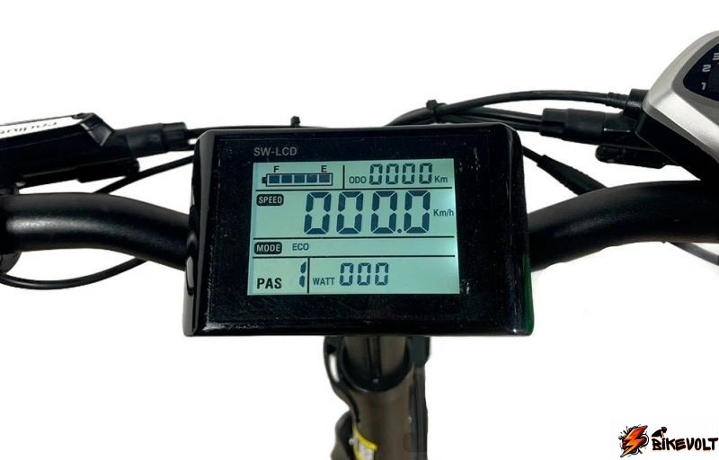 - дисплей расположен в удобном месте над выносом, информацию на нем видно при любом освещении;