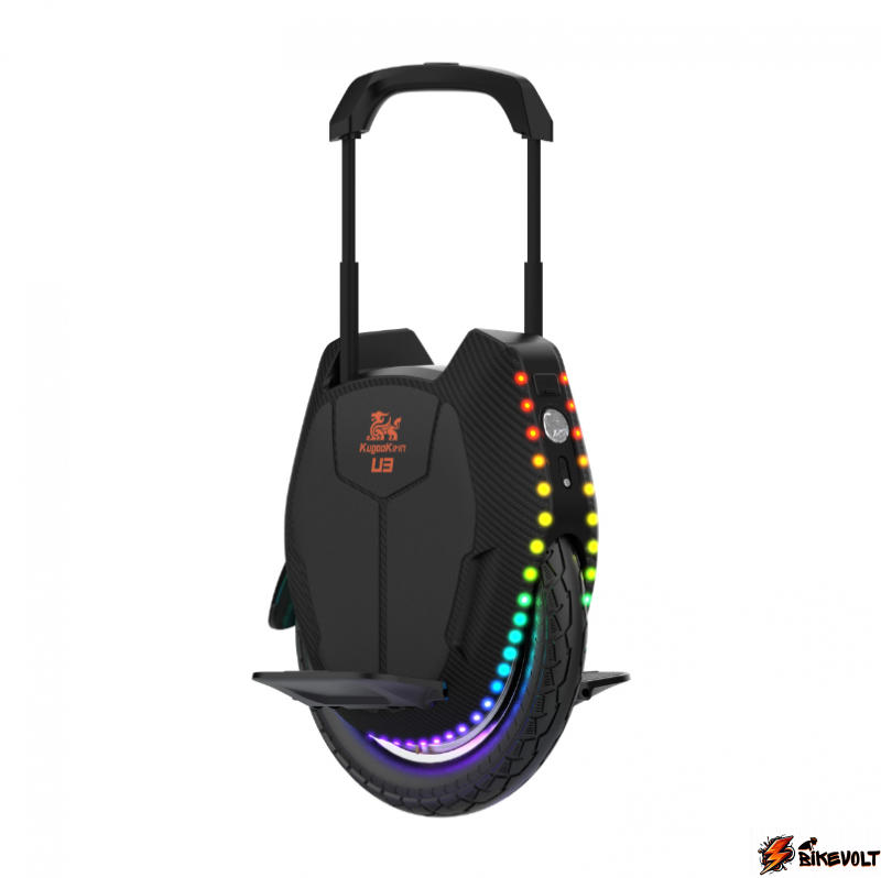 Моноколесо KUGOOKIRIN U3 — мощная и быстрая модель с новейшим мотором, 16-дюймовым колесом и большими педалями. Лаконичный стиль сочетается в черном корпусе и со светодиодной подсветкой и телескопической ручкой. С помощью выдвижной ручки с фиксацией, вы можете как переносить моноколесо в руках, так и катить его по земле, что облегчает управление вашим транспортным средством в городских условиях. Надежную и комфортную фиксацию райдера обеспечивают складные педали по бокам корпуса.