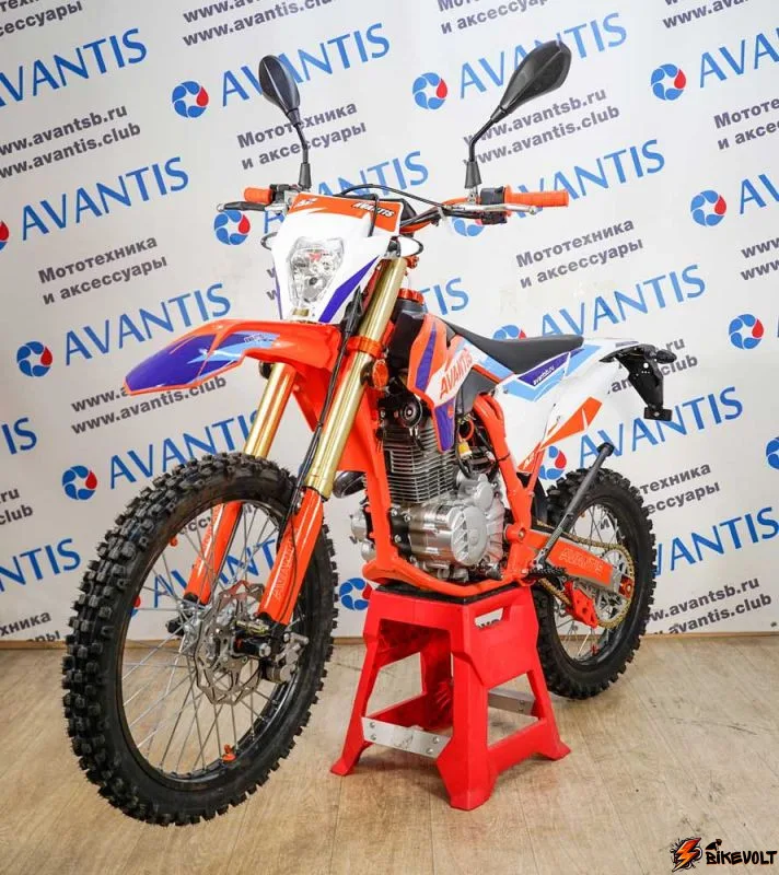 Мотоцикл Avantis A2 Basic (172FMM-3A) ПТС — универсальный агрегат, который подойдет как взрослым, так и подросткам с 16 лет. В отличие от моделей без ПТС у него есть полный комплект элементов, необходимых для движения по дорогам общего пользования: поворотники, зеркала заднего вида, клаксон, фара головного света, задний габарит со стоп-сигналом. Мотобайк Avantis A2 Basic маневренный, легкий в управлении, надежный. Спереди имеется телескопическая перевернутая вилка толщиной 41 мм, сзади — маятниковая подвеска с моноамортизатором. Охлаждение двигателя модели воздушное, бензин подается карбюратором. Коробка передач классическая пятиступенчатая. Данную модель активно используют для езды по бездорожью.