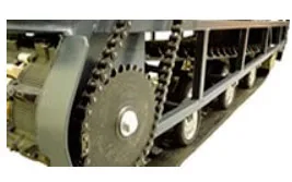 - отсутствие выступающих частей конструкции между гусеницей и днищем рамы обеспечивает беспрепятственный сход снега и грязи и предотвращает их налипание.