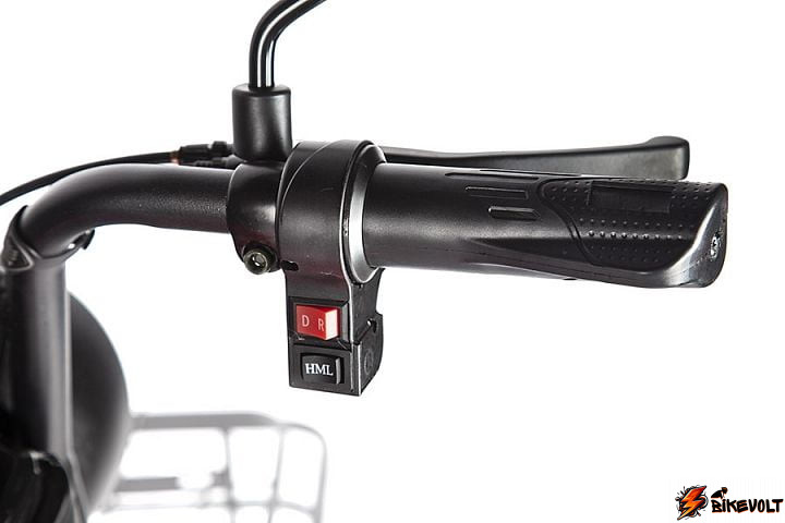 • оснащен 650 ваттным мотором, за счет которого трицикл разгоняется до 25 км/ч;