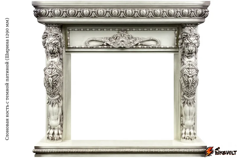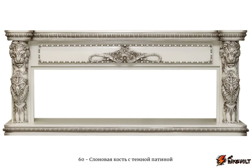 Портал Windsor – элегантная модель с богатым ярким декором, выполненная из высококачественных материалов. Колонны украшены образами необычных мифических существ с львиными головами, размещенными фронтально. Зона над очагом декорирована изысканным резным орнаментом.