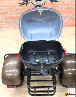 Стильный электроскутер с тремя колесами на мощной раме. Широкие колеса на легких литых алюминиевых дисках обеспечиваю высокую устойчивость и облегчают езду по любой дороге. Благодаря своей конструкции выдерживает высокую максимальную нагрузку, за счет чего Вы можете с легкостью перевозить дополнительного пассажира и вещи. Широкая подножка обеспечивает удобство при езде.