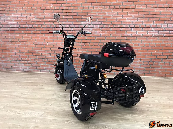 Стильный электроскутер с тремя колесами на мощной раме. Широкие колеса на легких литых алюминиевых дисках обеспечиваю высокую устойчивость и облегчают езду по любой дороге. Благодаря своей конструкции выдерживает высокую максимальную нагрузку, за счет чего Вы можете с легкостью перевозить дополнительного пассажира и вещи. Широкая подножка обеспечивает удобство при езде.