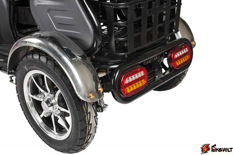 - Задняя корзина 36х38х17 см позволяет данной модели не только перевозить водителя и пассажира, но и некоторый груз!