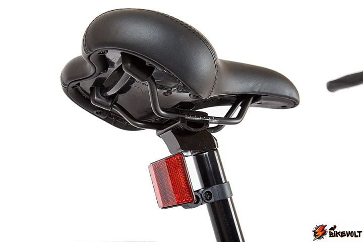 В связи с наличием  литий-ионного аккумулятора  АКБ 36V 13Ah на велогибриде можно преодолевать дистанцию в 60 км без зарядки.Аккумулятор расположен посередине, поэтому центр тяжести смещается вниз, что улучшает управление велогибридом. Велогибрид обладает пятью уровнями работы ассистента, оснащен превосходной регулируемой передней вилкой Suntour XCR с ходом 100 мм и трансмиссией с 7-скоростным переключателем. Велогибрид имеет ЖК-дисплей, отображающий 5 уровней режима ассистента, индикаторы заряда батареи, скорость, показатели пройденного расстояния.