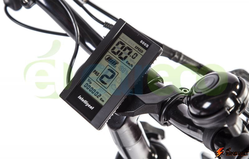 Установленный на электробайке велокомпьютер Intelligent 800S поддерживает несколько вариантов работы мотора в синхронном режиме, что позволяет менять уровень помощи вращению педалей, ограничить скорость до «пешеходной» (6 км/ч), выключать двигатель, когда скорость достигнет установленного значения. На жидкокристаллическом дисплее с регулировкой яркости отображаются значения скорости и режимов движения, уровень заряда аккумулятора, величина пробега.